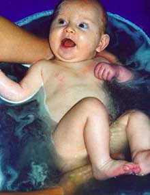 Meine ersten Badeversuche im September 2002 in meiner tollen blauen Wanne. Darin ist das Baden eine Wucht!