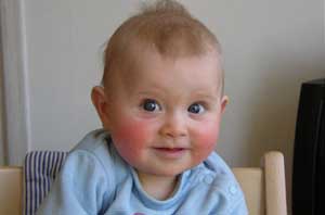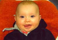 März 2003: Jetzt robbe ich mich schon wie verrückt durch die Wohnung. Und ich sage euch: Ich bin ganz schön schnell! Ein Zahn bricht auch bald durch, und wenn ich noch kräftiger in den Armen bin, dann kann ich vielleicht auch bald krabbeln. Mit dem Sitzen jedenfalls klappt es schon, wie ihr seht!
